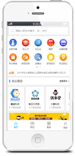 無需下載,沒有平臺、機型的限制,有觸屏手機就能上網(wǎng)找工作!機會不再稍縱即逝,它已在你輕盈的指尖上!